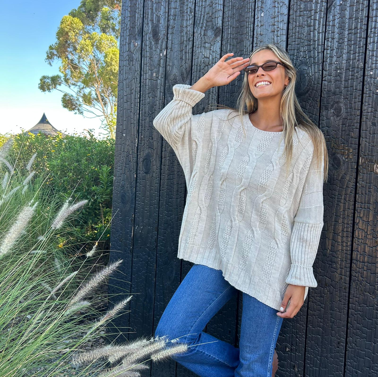 Un estilo oversize canchero de ochos adelante pero liso por detrás. Un buzo de diseño ; muy favorecedor al tener un look rectangular