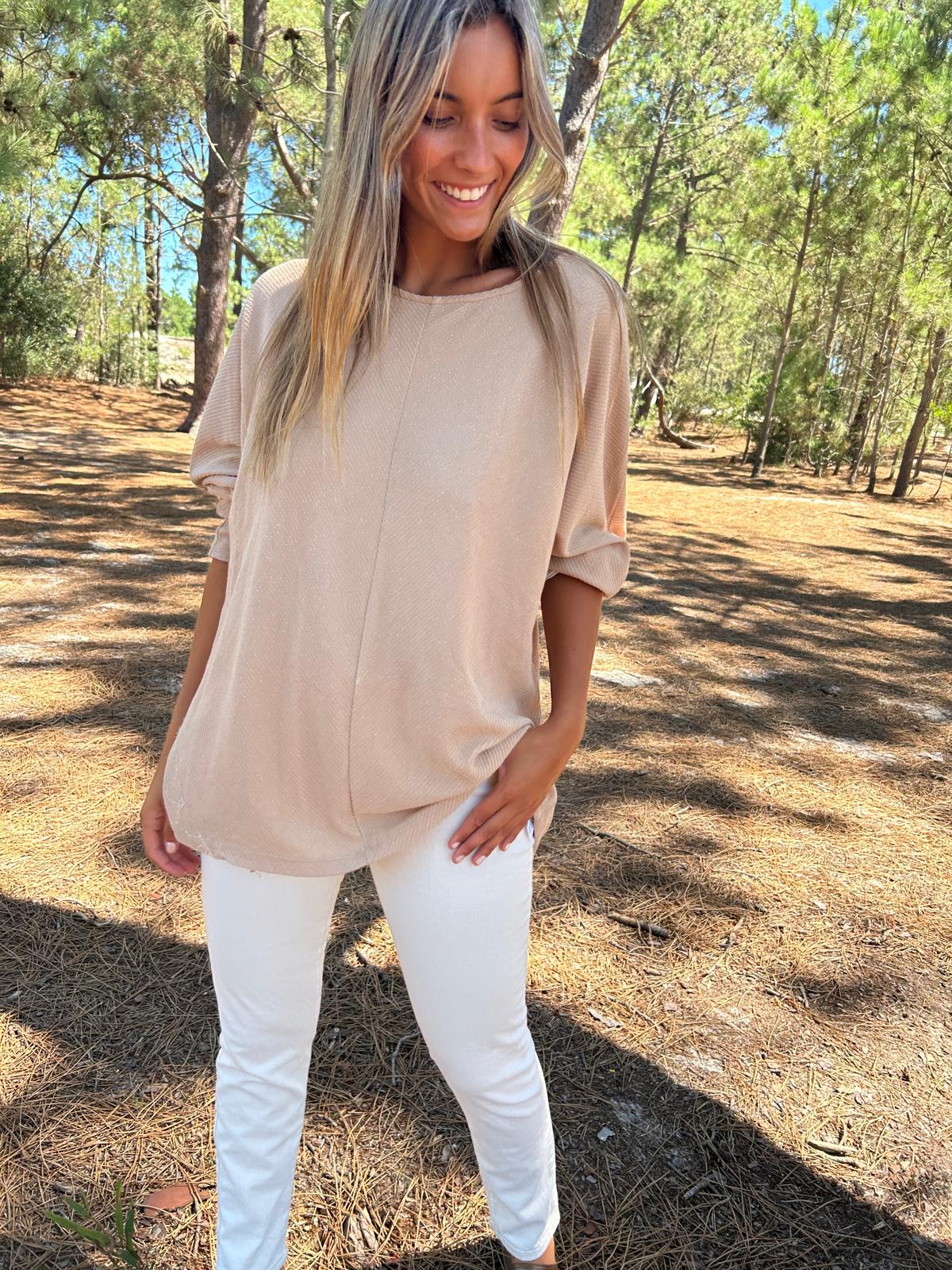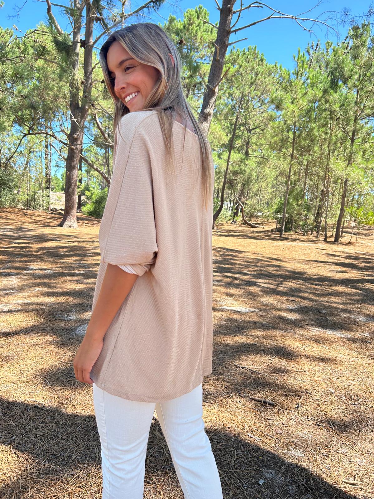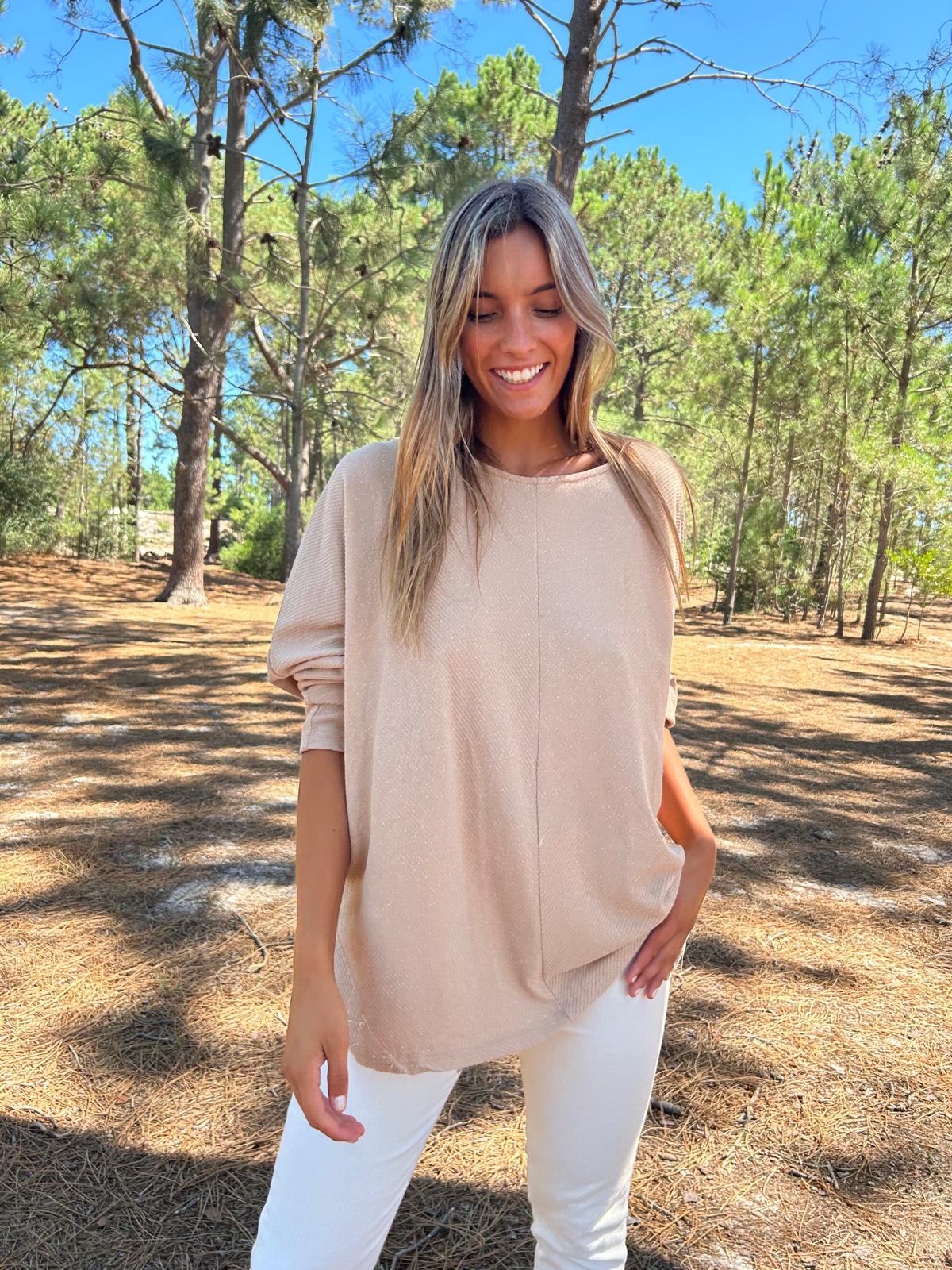 Buzo oversize en chocolate . Corte desigual pero súper clásico a la base con collareta