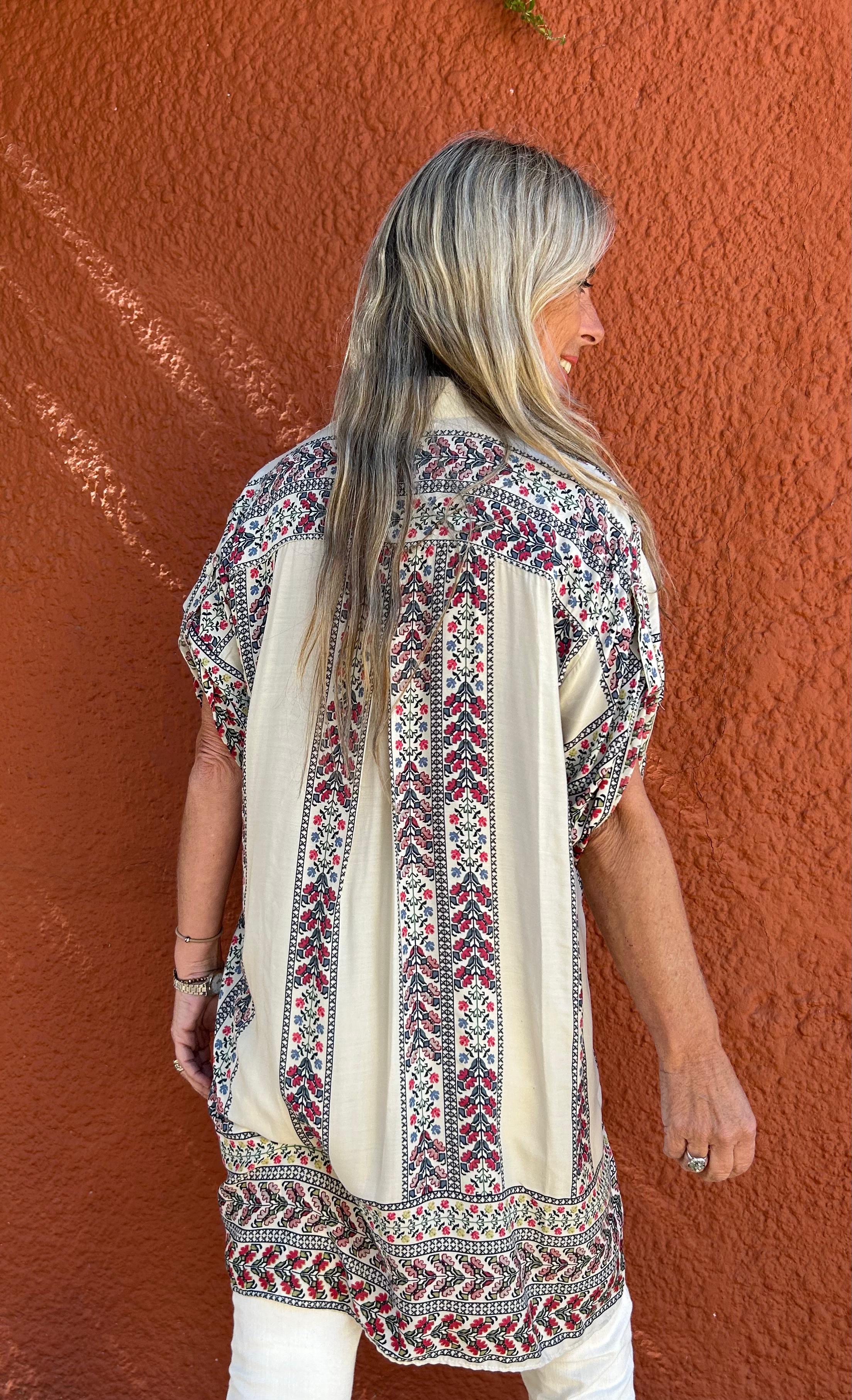 Camisa estampada : camisa de seda estampada fondo crudo .