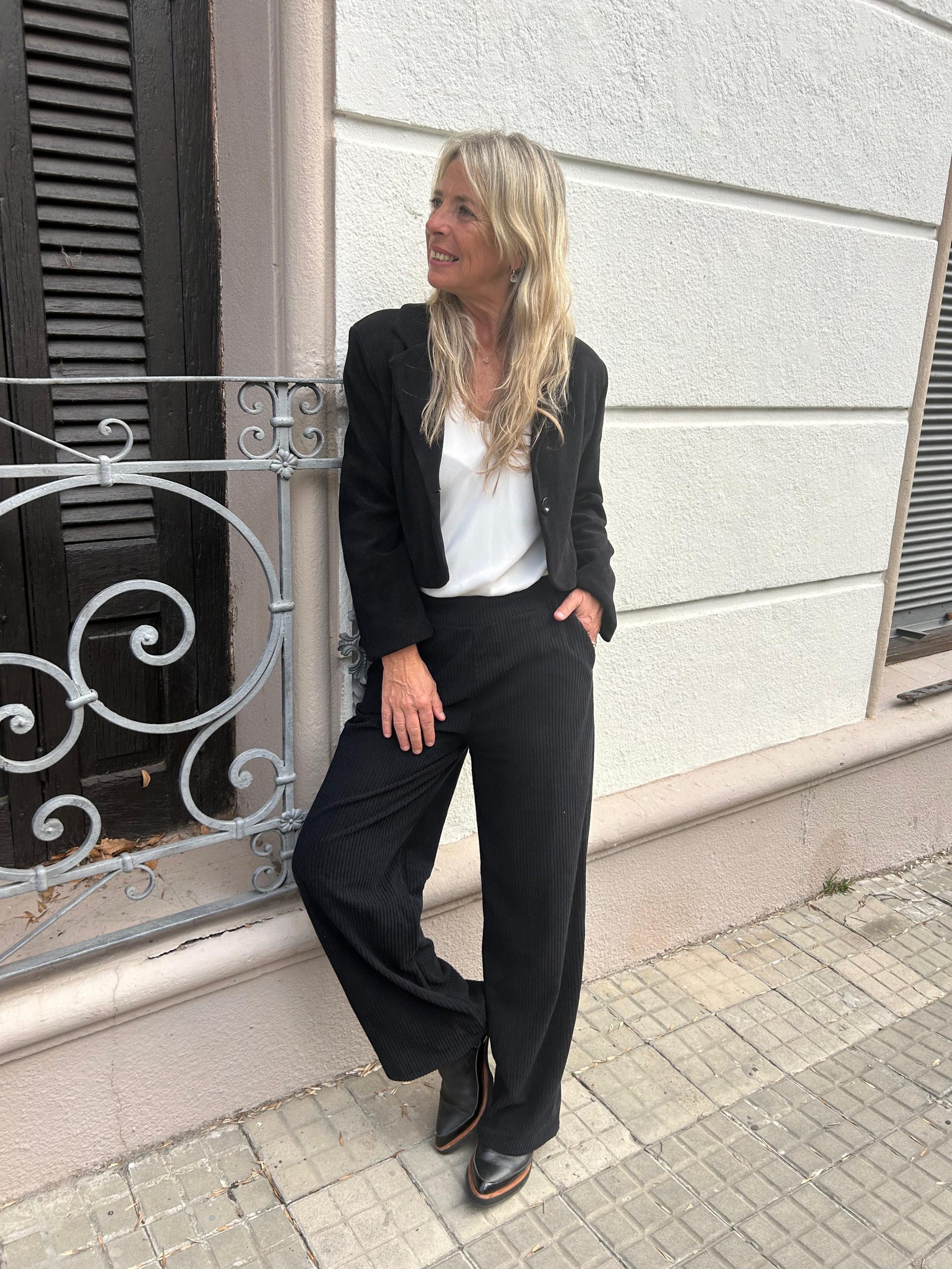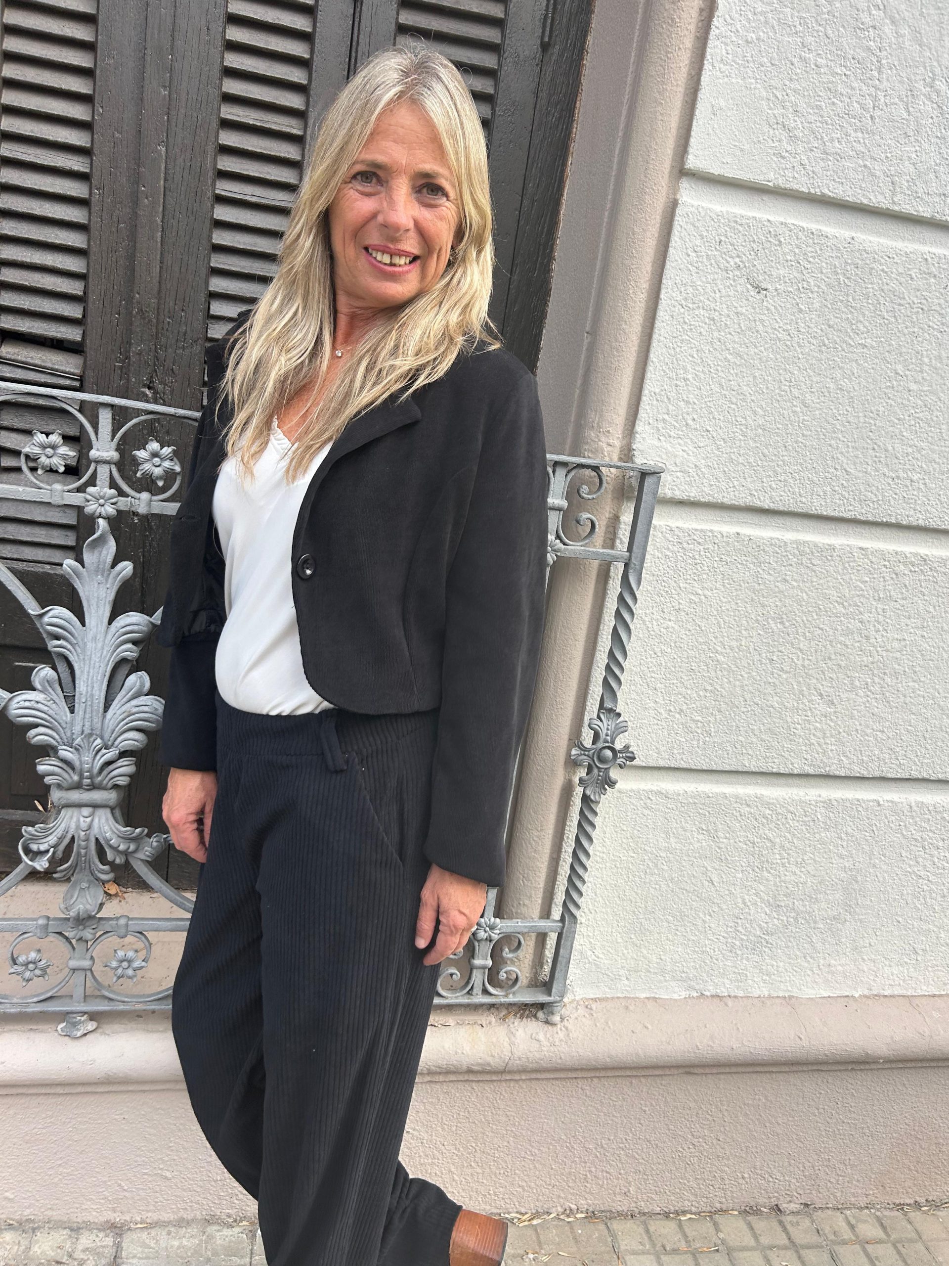 Chaqueta Julieta cropped Chaqueta corta beige . Símil pana . Comp algodón , lycra . Es un estilo blazer corto , ideal para looks de Pant anchos . Súper versátil según tu look