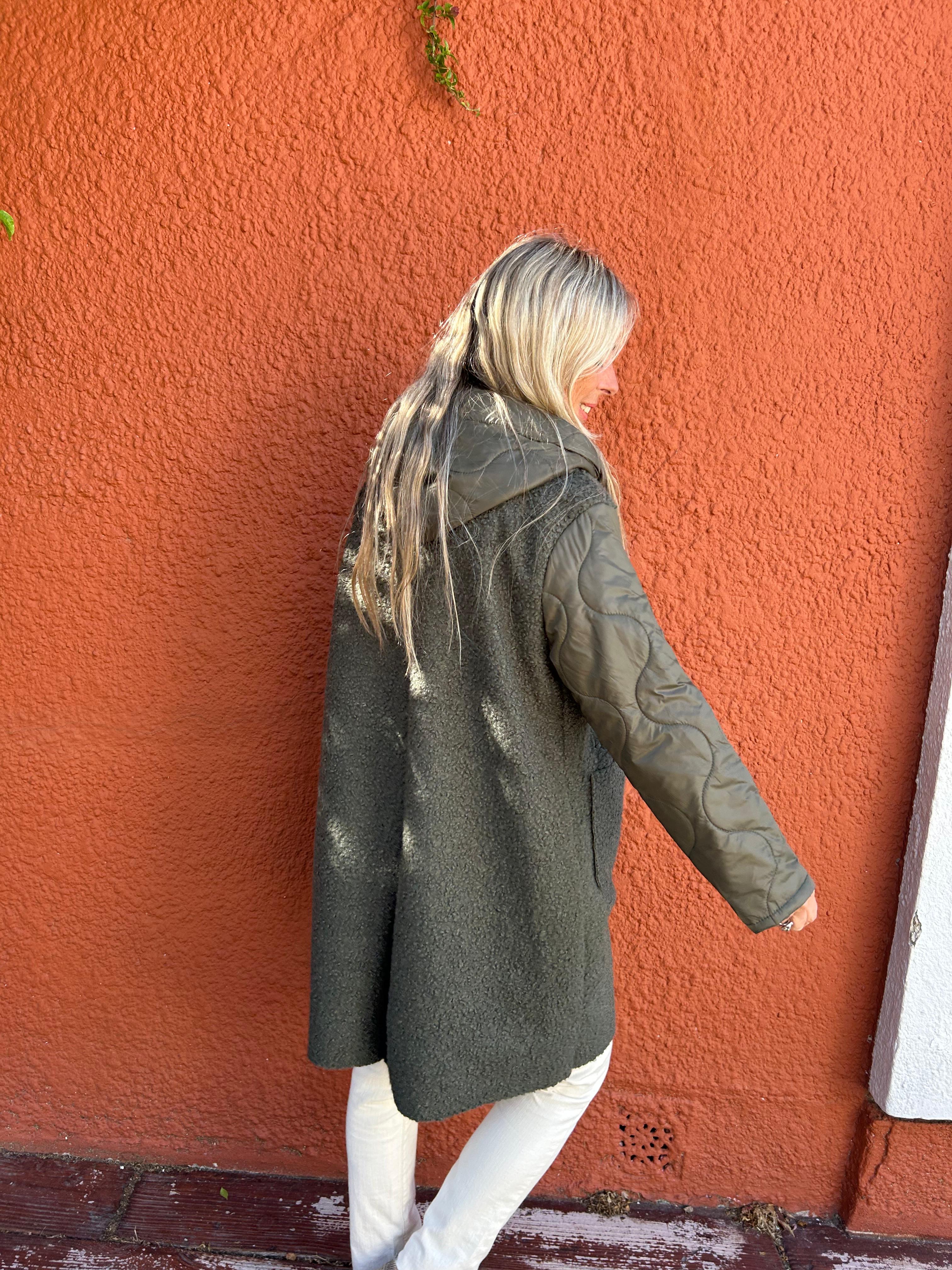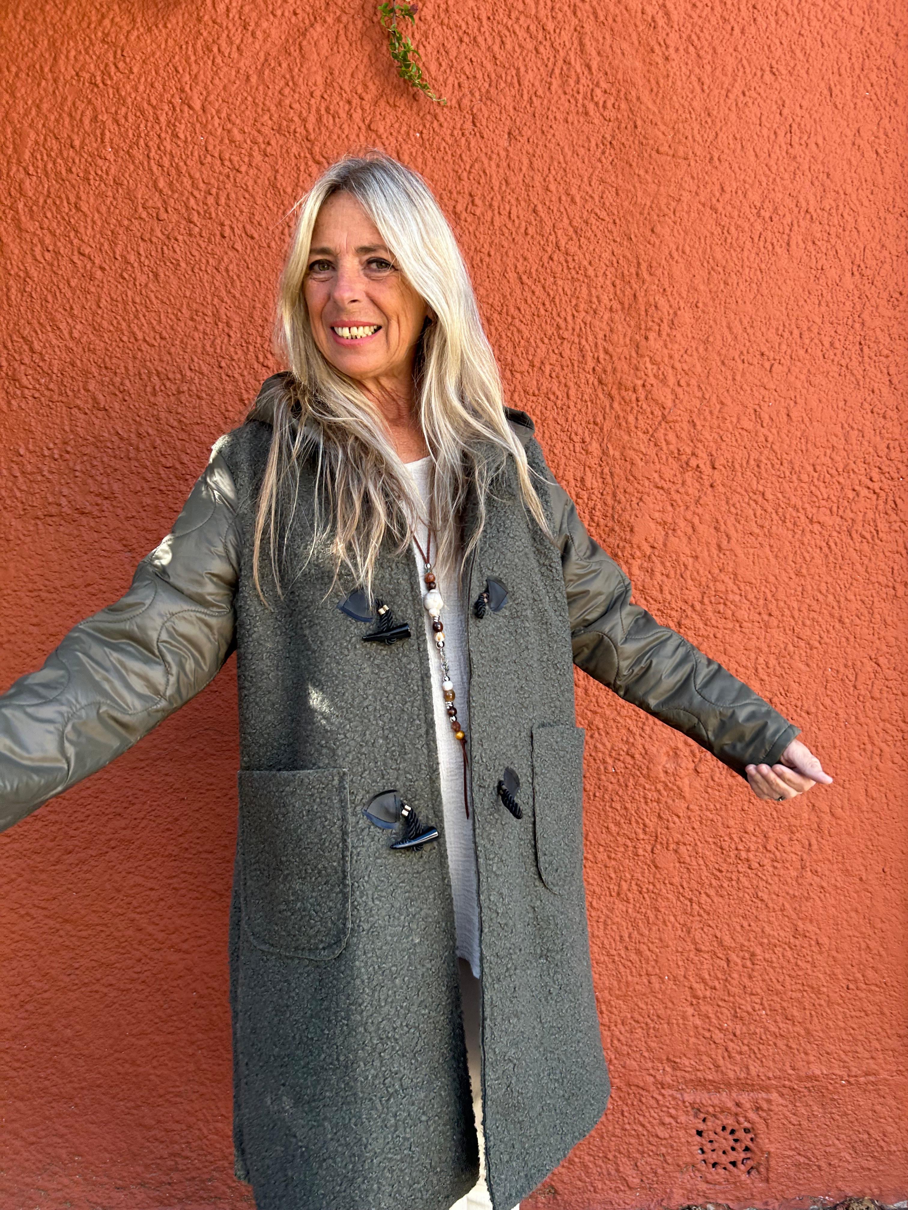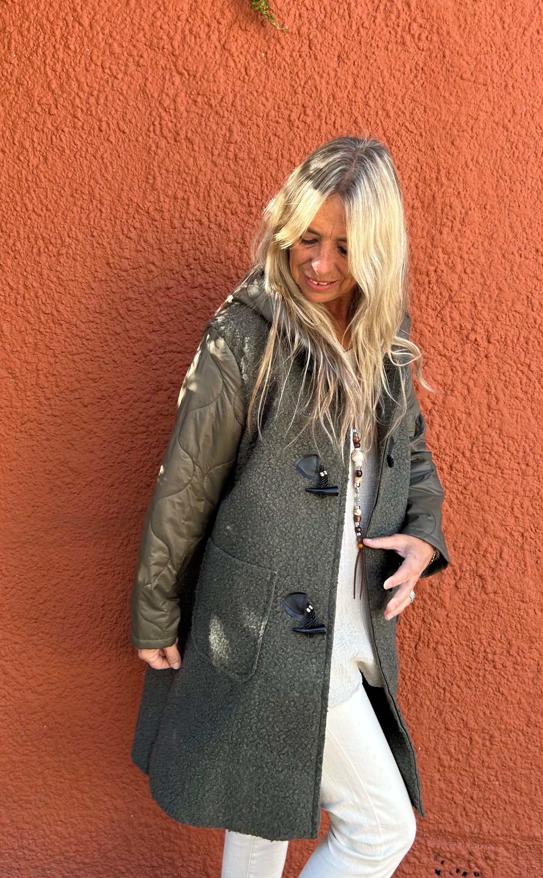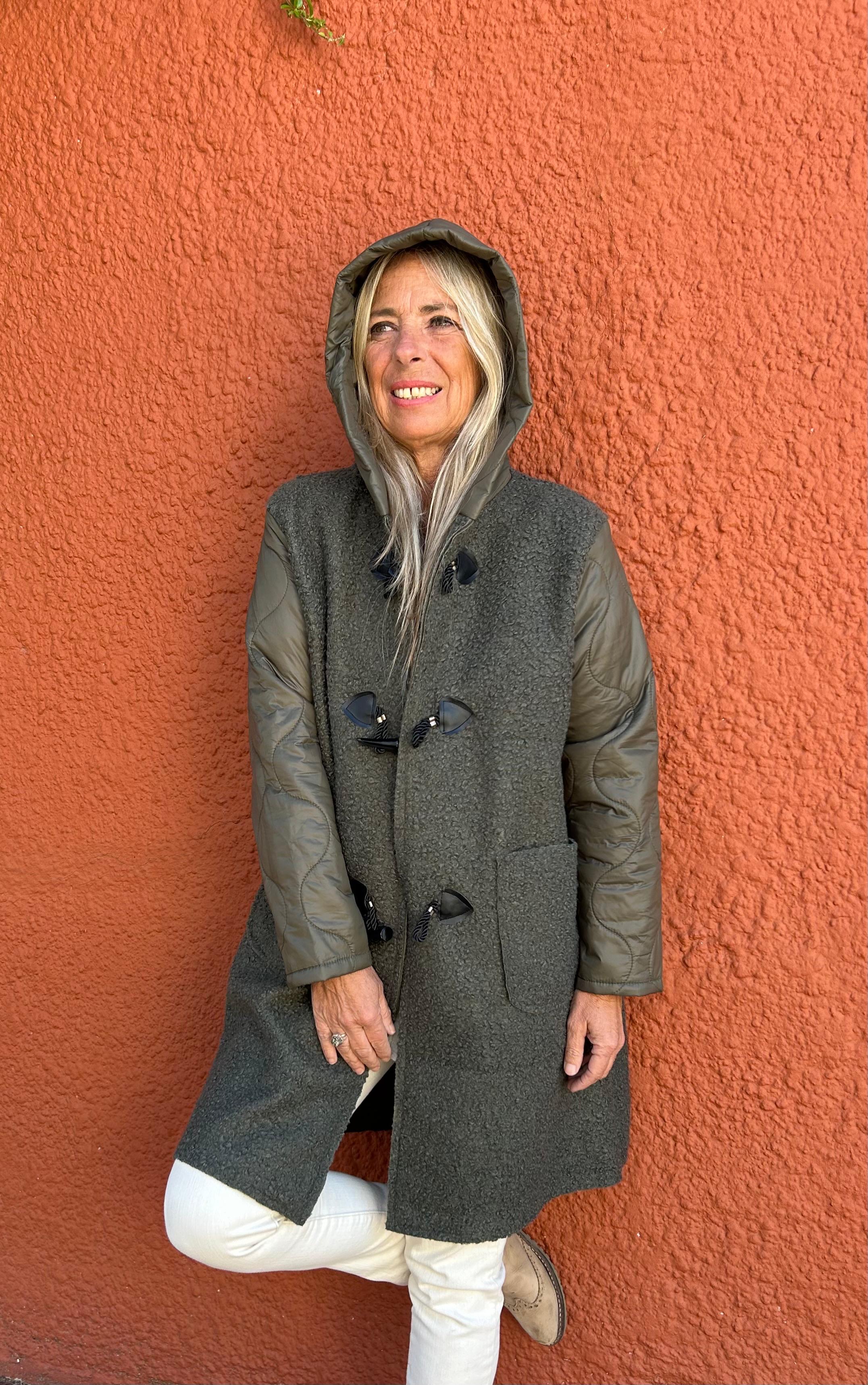 Montgomery Moon azul : Montgomery de dos calidades . Con capucha y mangas al tono de nylon .