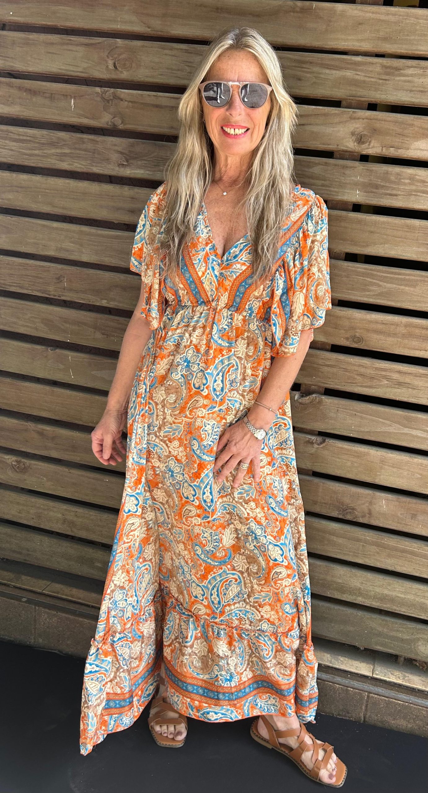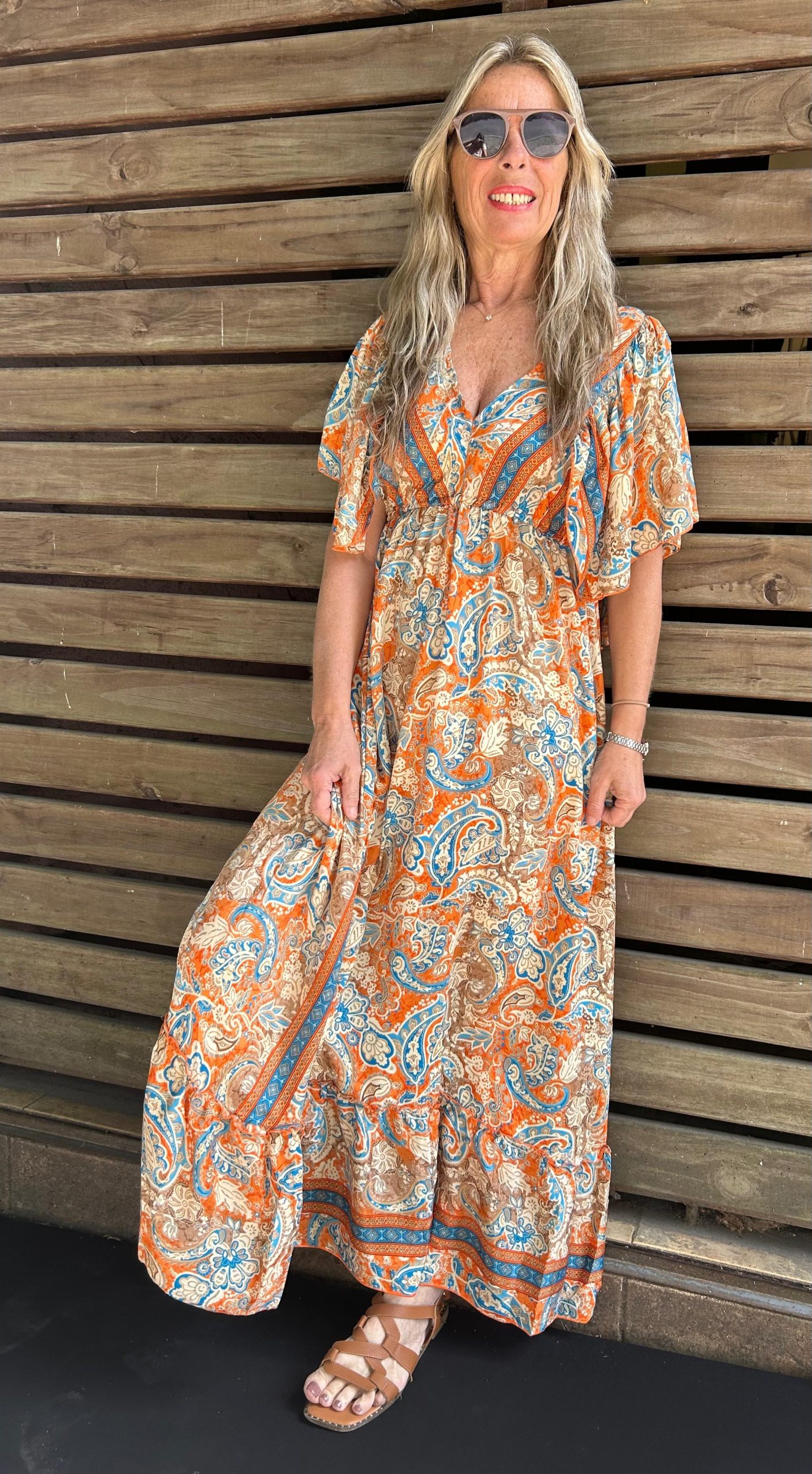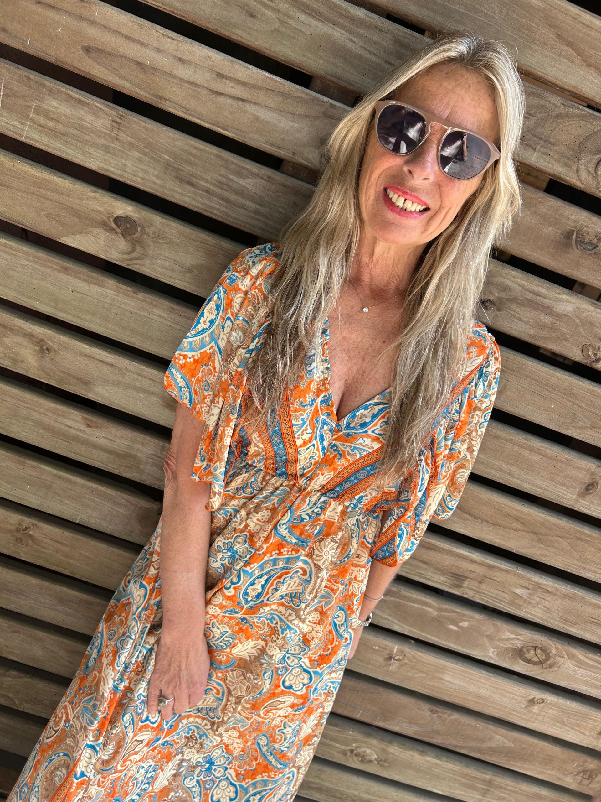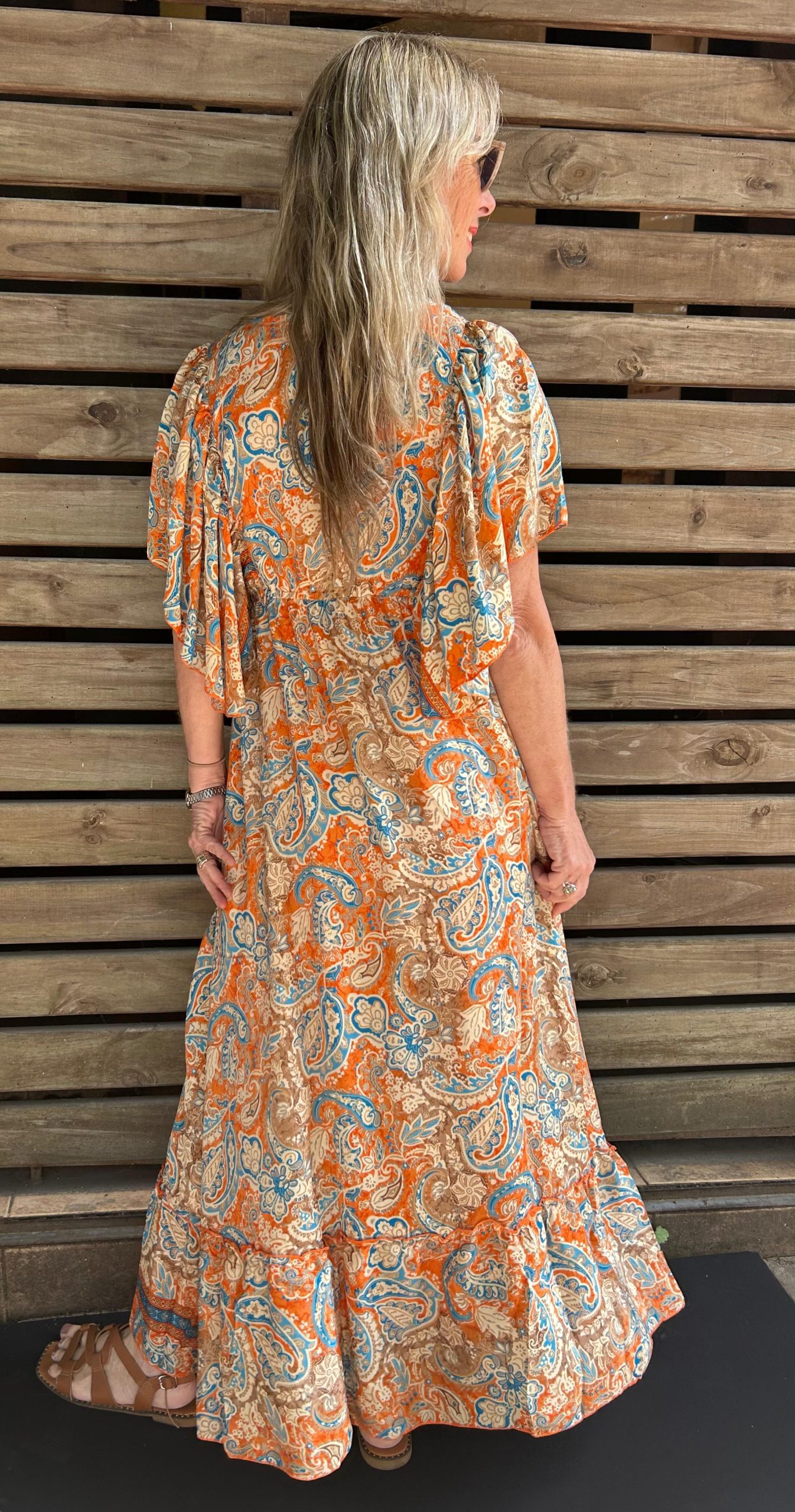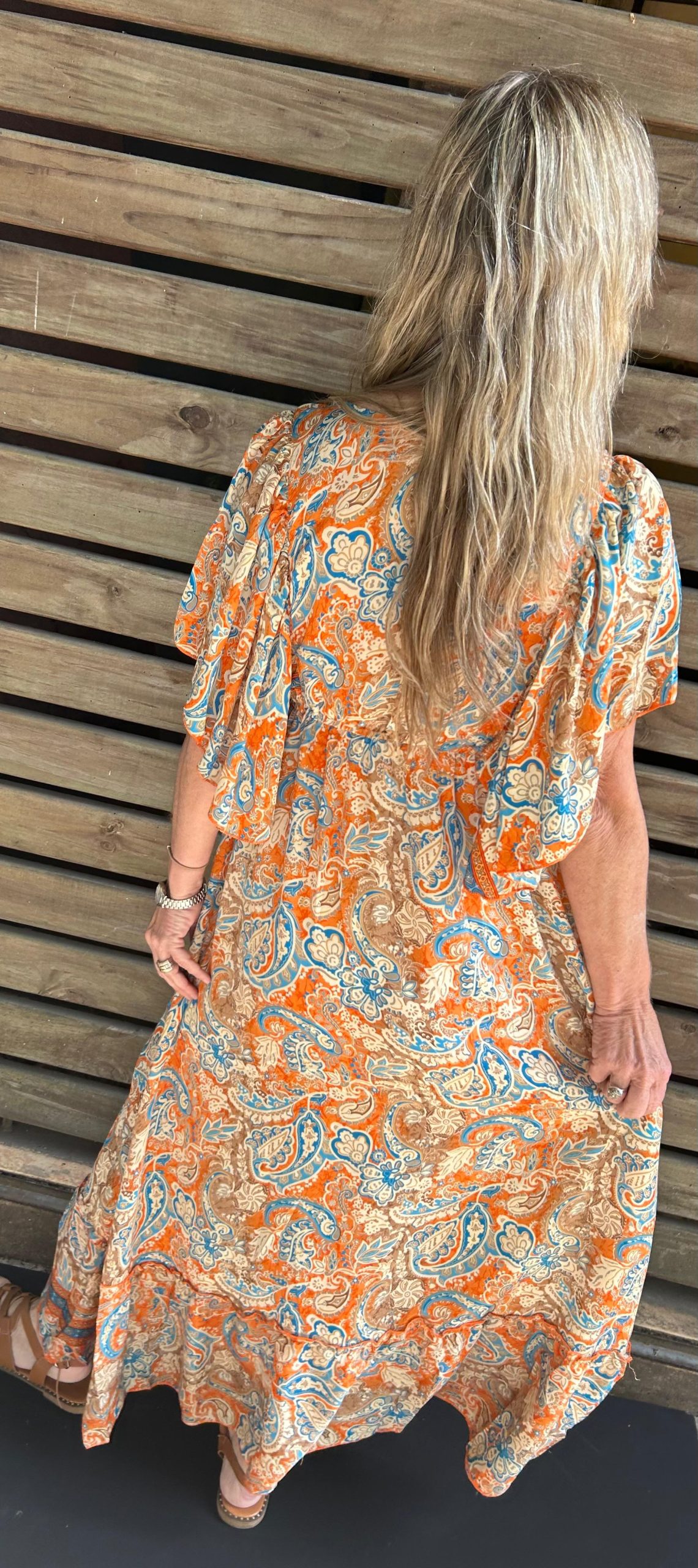 Vestido Aretha : vestido escote en V con volantes en manga.