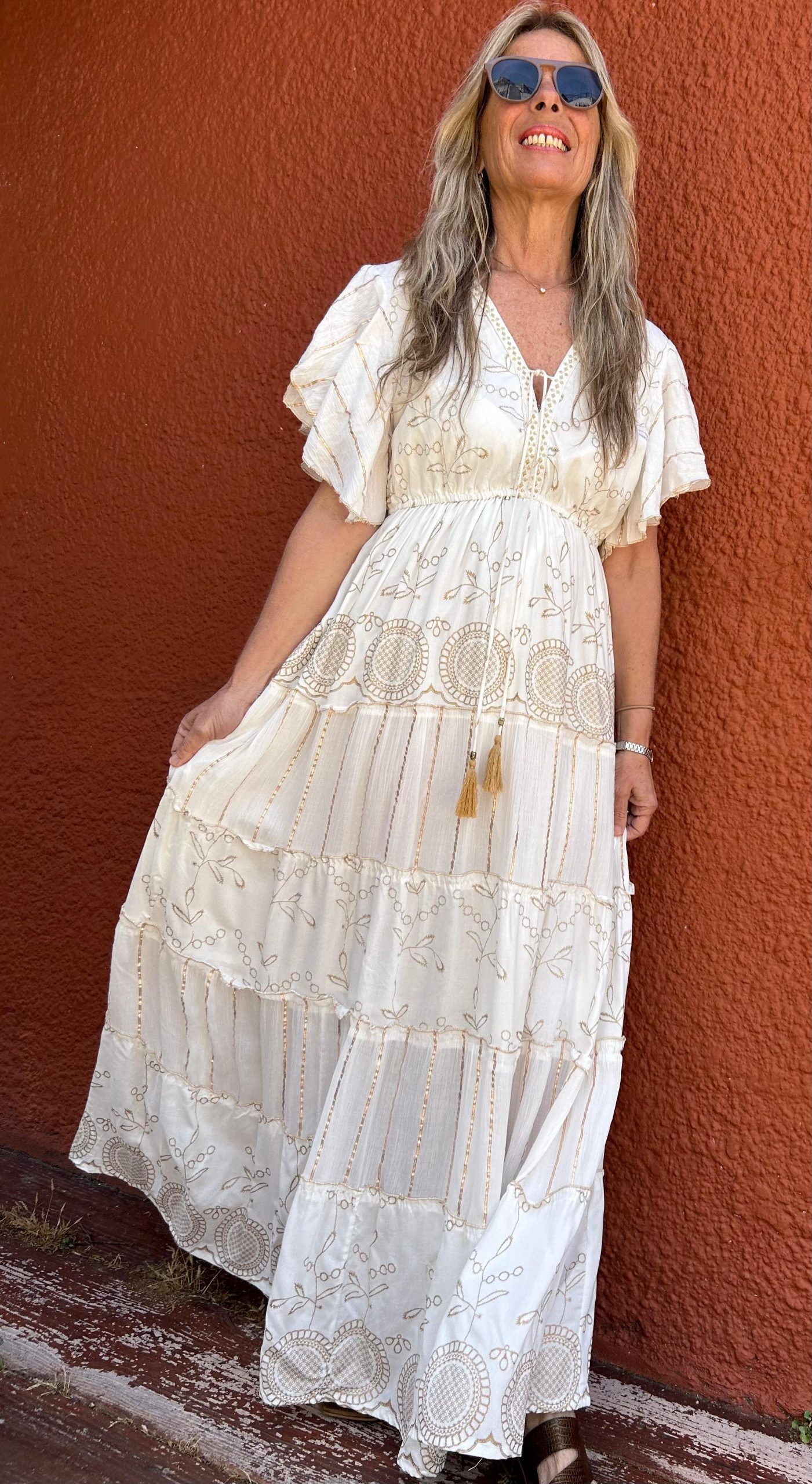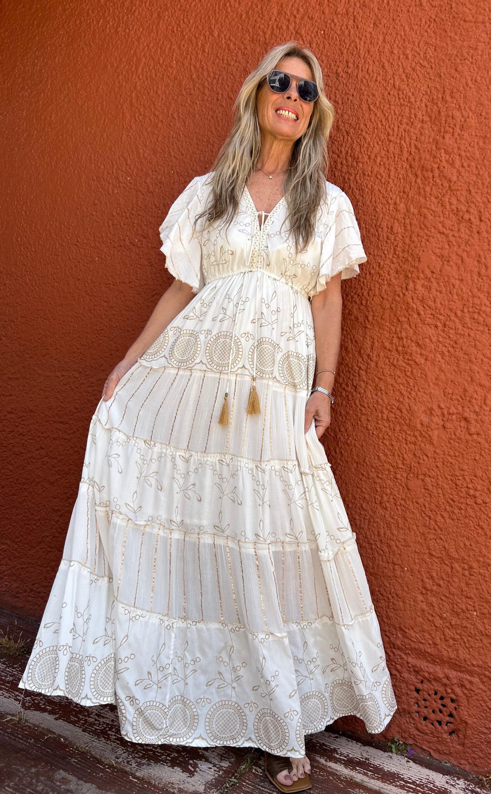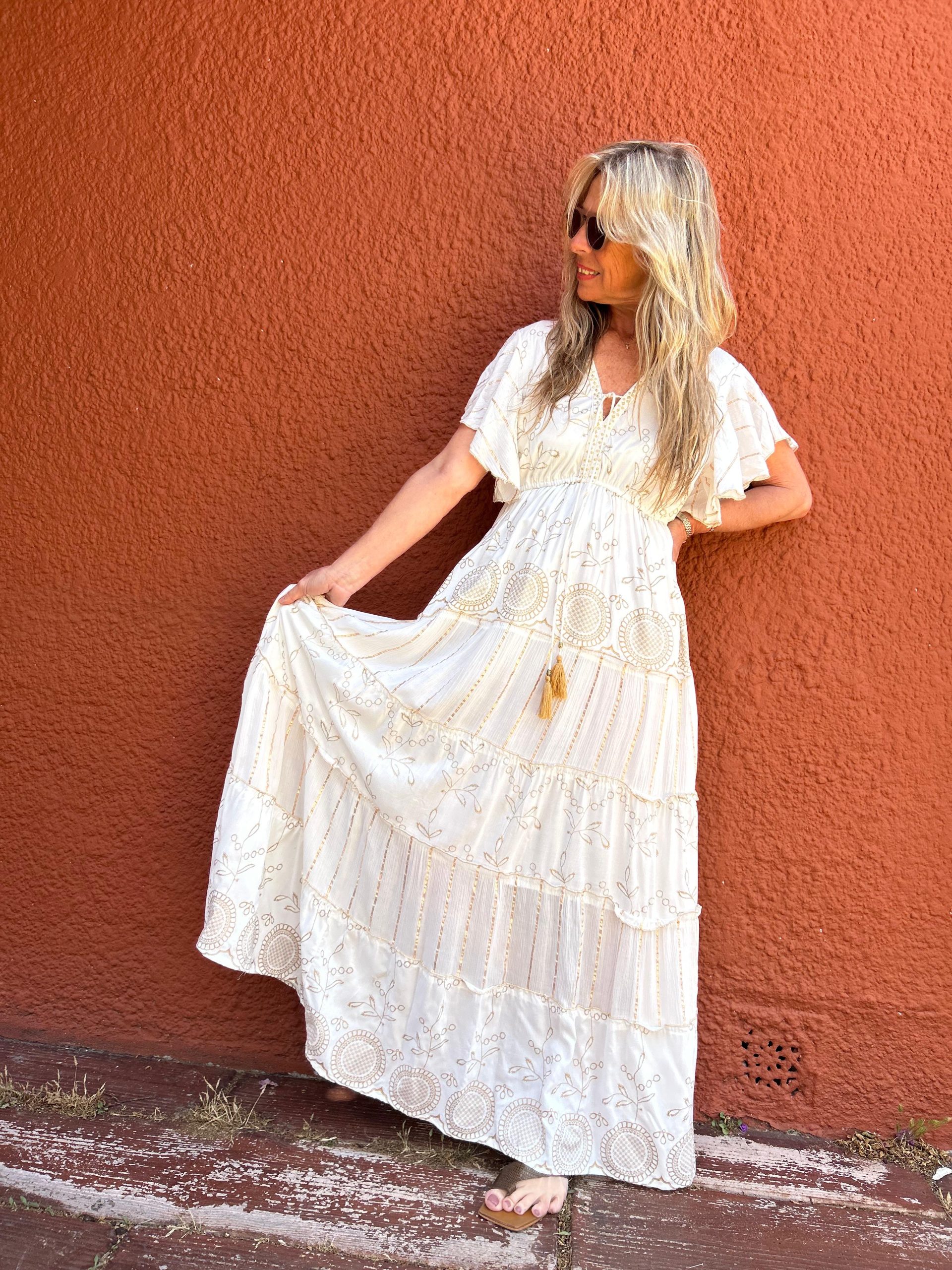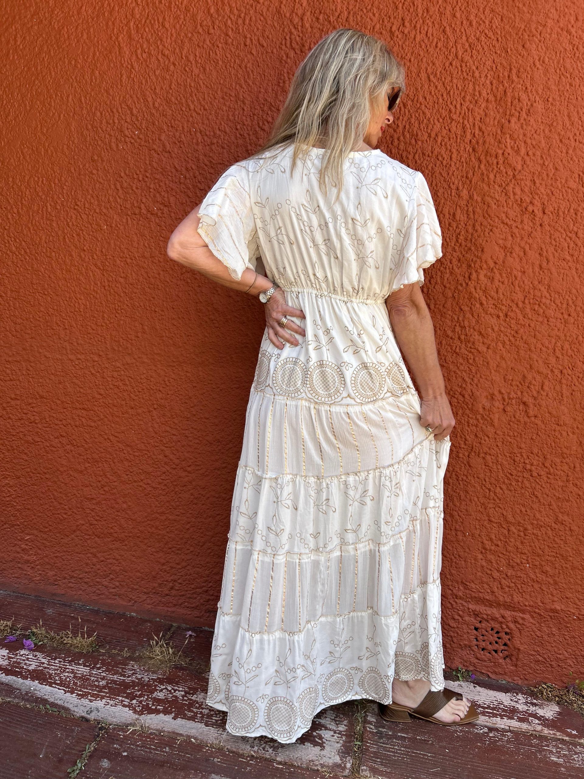 Vestido Roma crudo y dorado